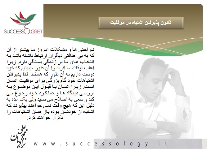 قانون پذیرفتن اشتباه در موفقیت دکتر محمدعلی نژادیان Send an email 28 فروردین 1394 10:26 کمتر از یک دقیقه قانون پذیرفتن اشتباه در موفقیت/ محمدعلی نژادیان دکتر محمدعلی نژادیان Send an email 28 فروردین 1394 10:26 کمتر از یک دقیقه اشتراک گذاری فیس بوک X لینکدین واتس آپ تلگرام اشتراک گذاری از طریق ایمیل چاپ