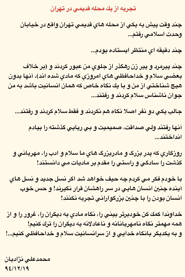 تجربه از يك محله قديمي در تهران دکتر محمدعلی نژادیان Send an email 20 اسفند 1394 04:35 کمتر از یک دقیقه محمدعلي نژاديان دکتر محمدعلی نژادیان Send an email 20 اسفند 1394 04:35 کمتر از یک دقیقه اشتراک گذاری فیس بوک X لینکدین واتس آپ تلگرام اشتراک گذاری از طریق ایمیل چاپ