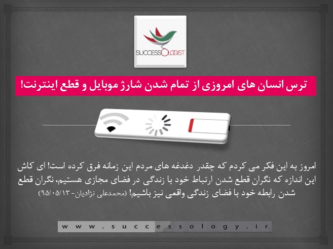 ترس انسان های امروزی از تمام شدن شارژ موبایل و قطع اینترنت! دکتر محمدعلی نژادیان Send an email 13 مرداد 1395 09:57 کمتر از یک دقیقه محمدعلی نژادیان دکتر محمدعلی نژادیان Send an email 13 مرداد 1395 09:57 کمتر از یک دقیقه اشتراک گذاری فیس بوک X لینکدین واتس آپ تلگرام اشتراک گذاری از طریق ایمیل چاپ