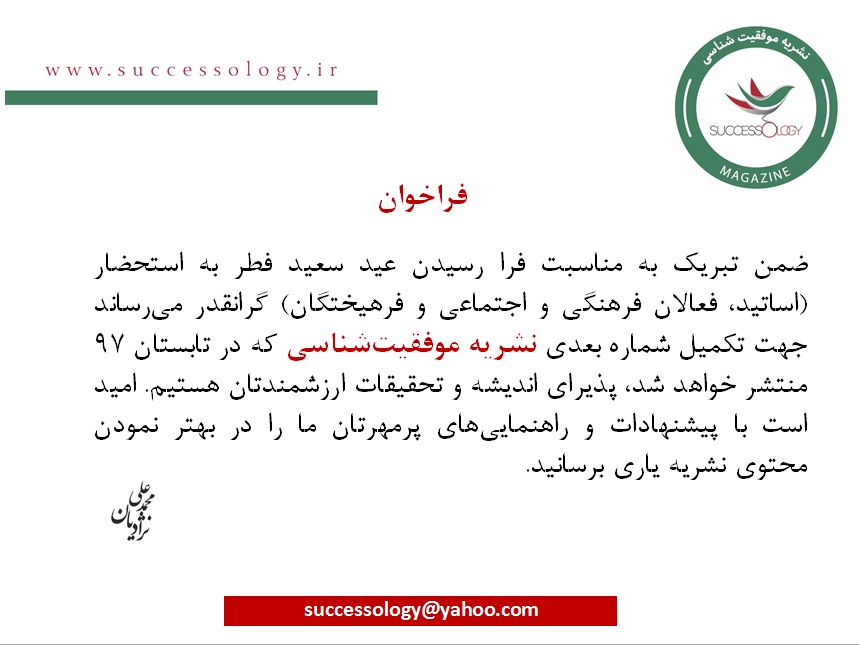 فراخوان دکتر محمدعلی نژادیان Send an email 24 خرداد 1397 14:47 کمتر از یک دقیقه نشریه موفقیتشناسی دکتر محمدعلی نژادیان Send an email 24 خرداد 1397 14:47 کمتر از یک دقیقه اشتراک گذاری فیس بوک X لینکدین واتس آپ تلگرام اشتراک گذاری از طریق ایمیل چاپ